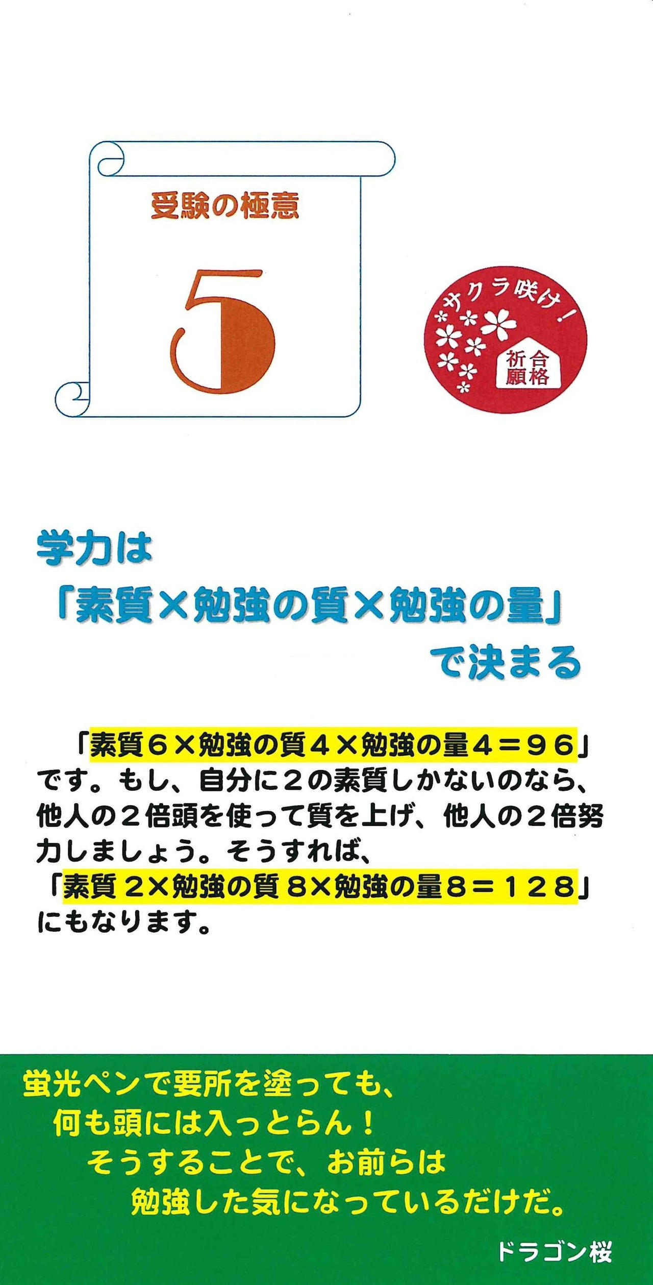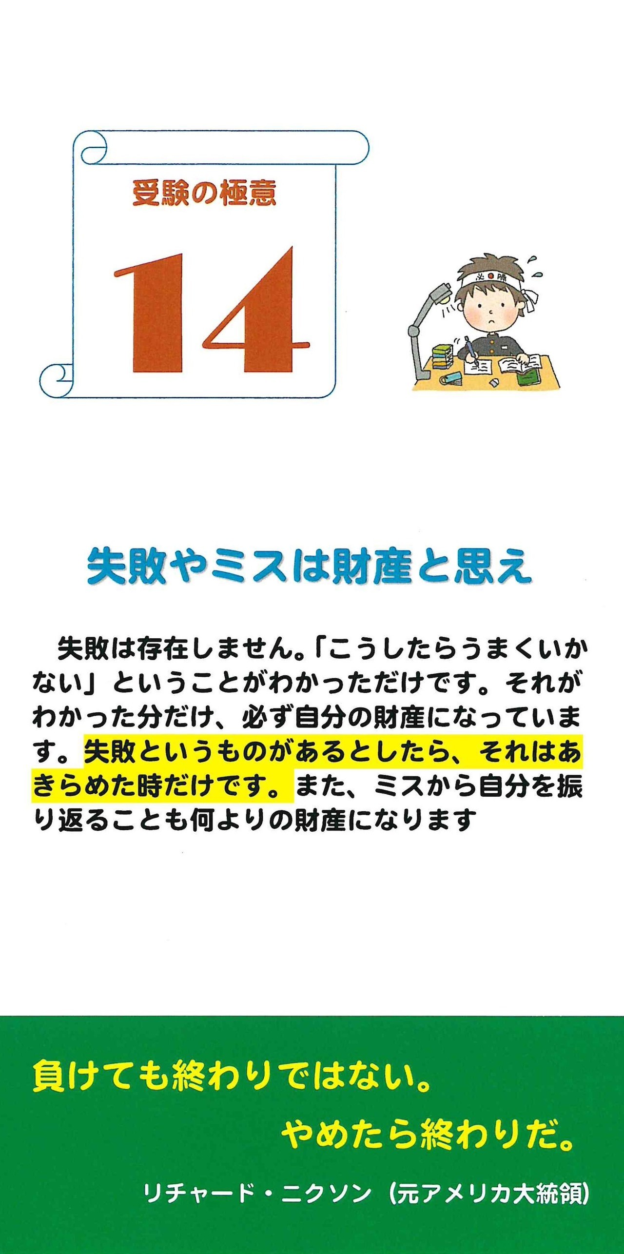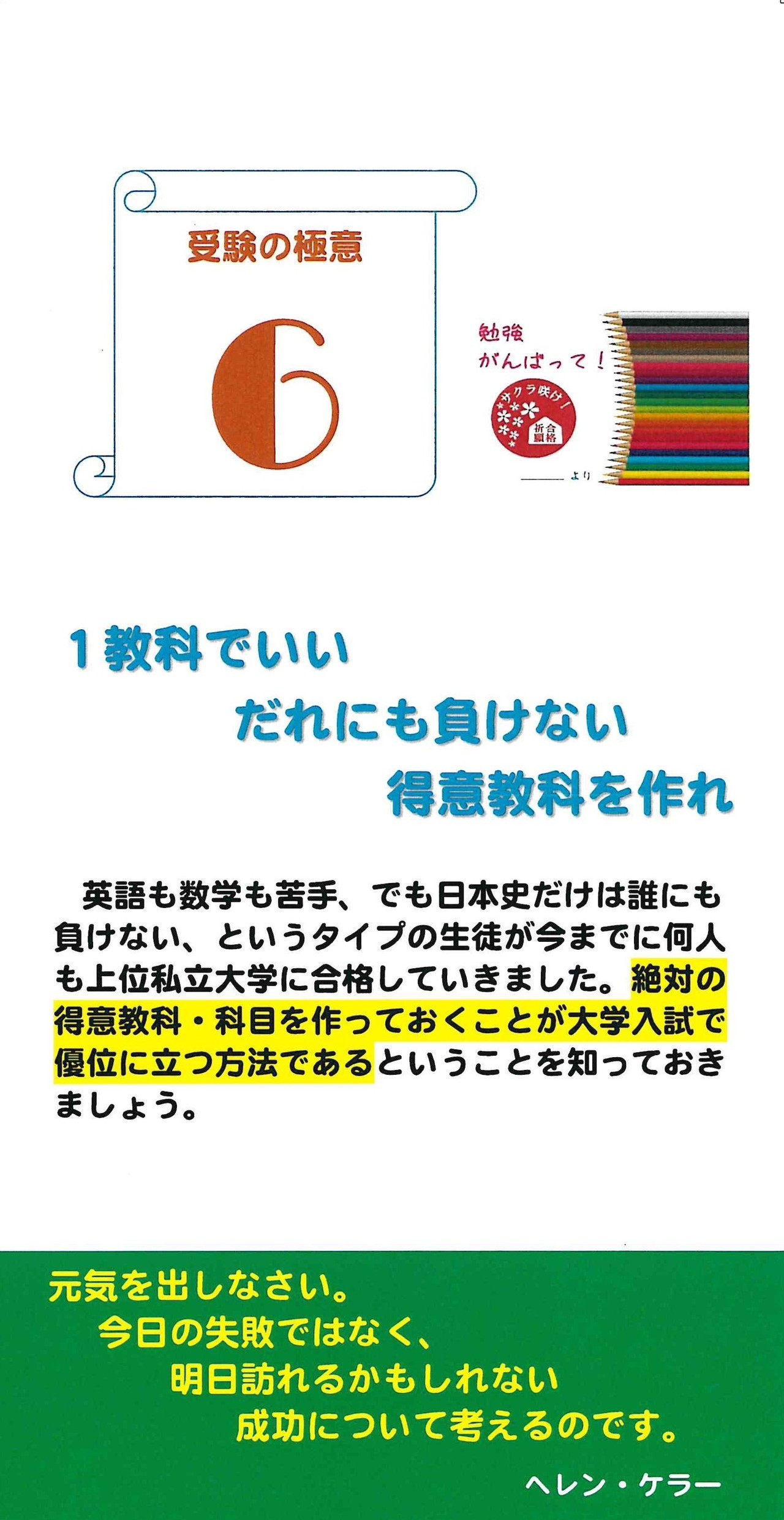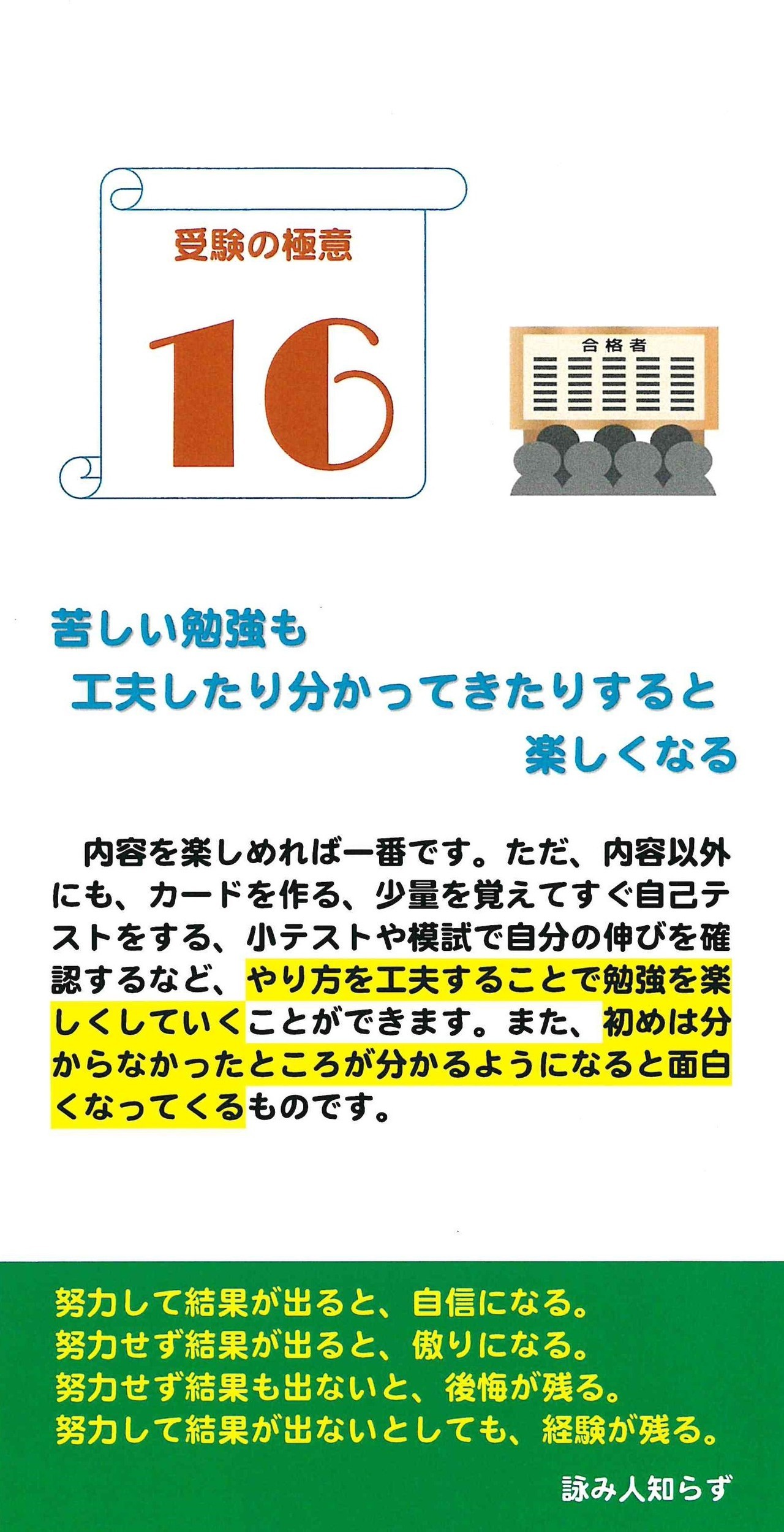 清楓義塾が考える「受験の極意」と、受験に役立つ「名言・格言」を1ヵ月カレンダーにしました。入塾者にプレゼントしています。