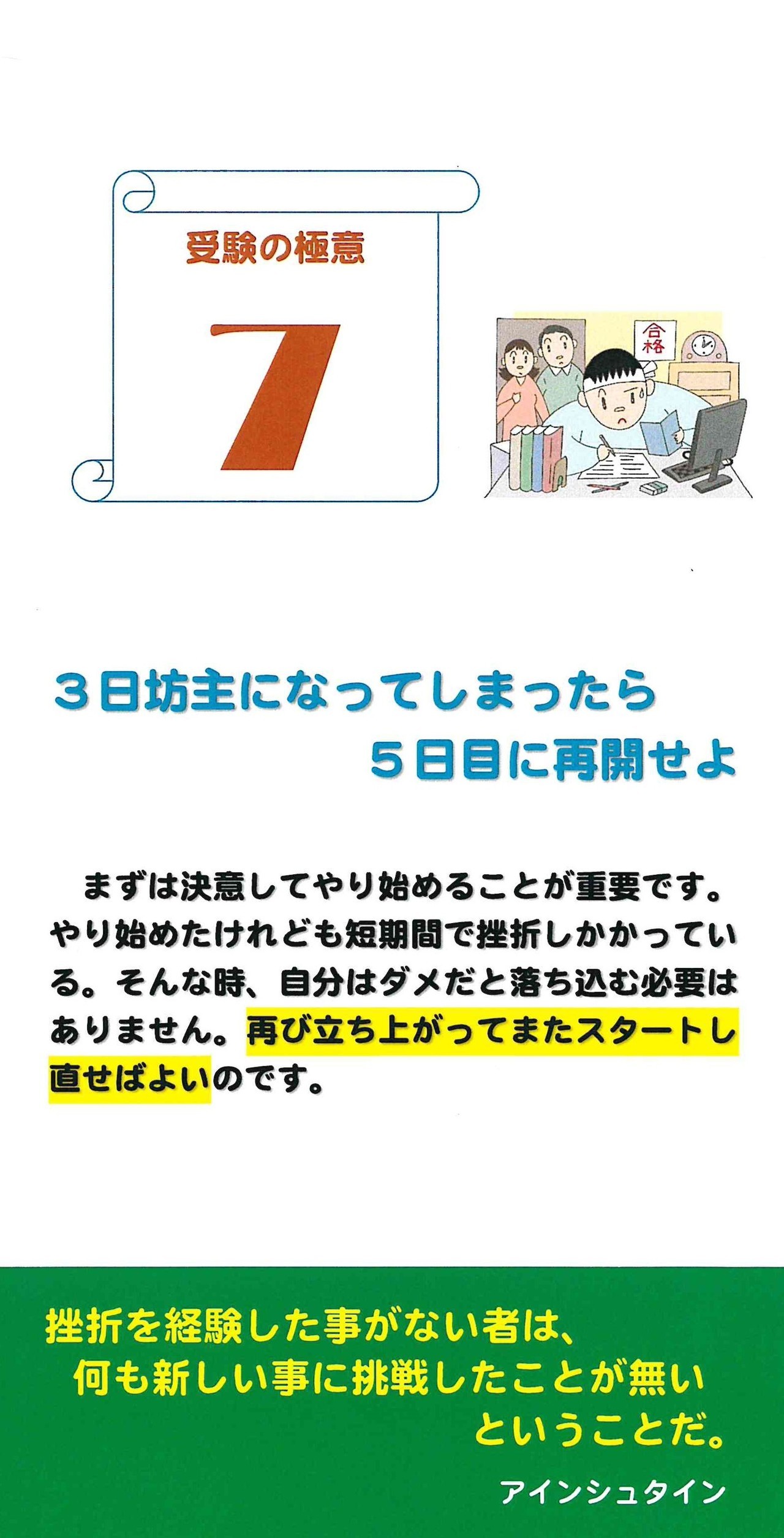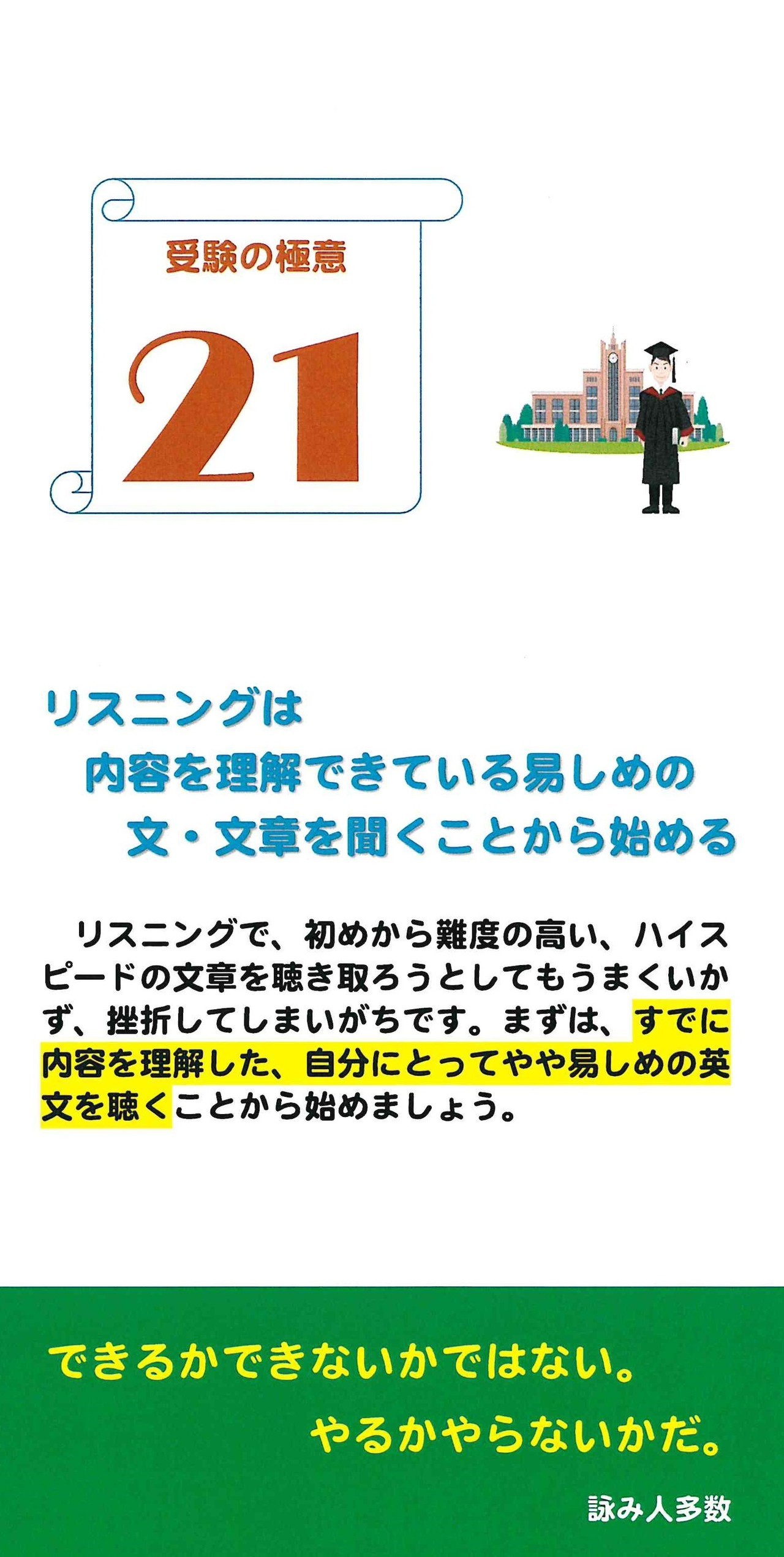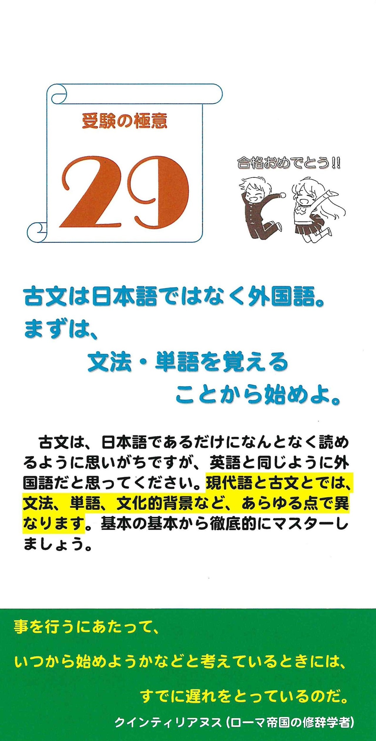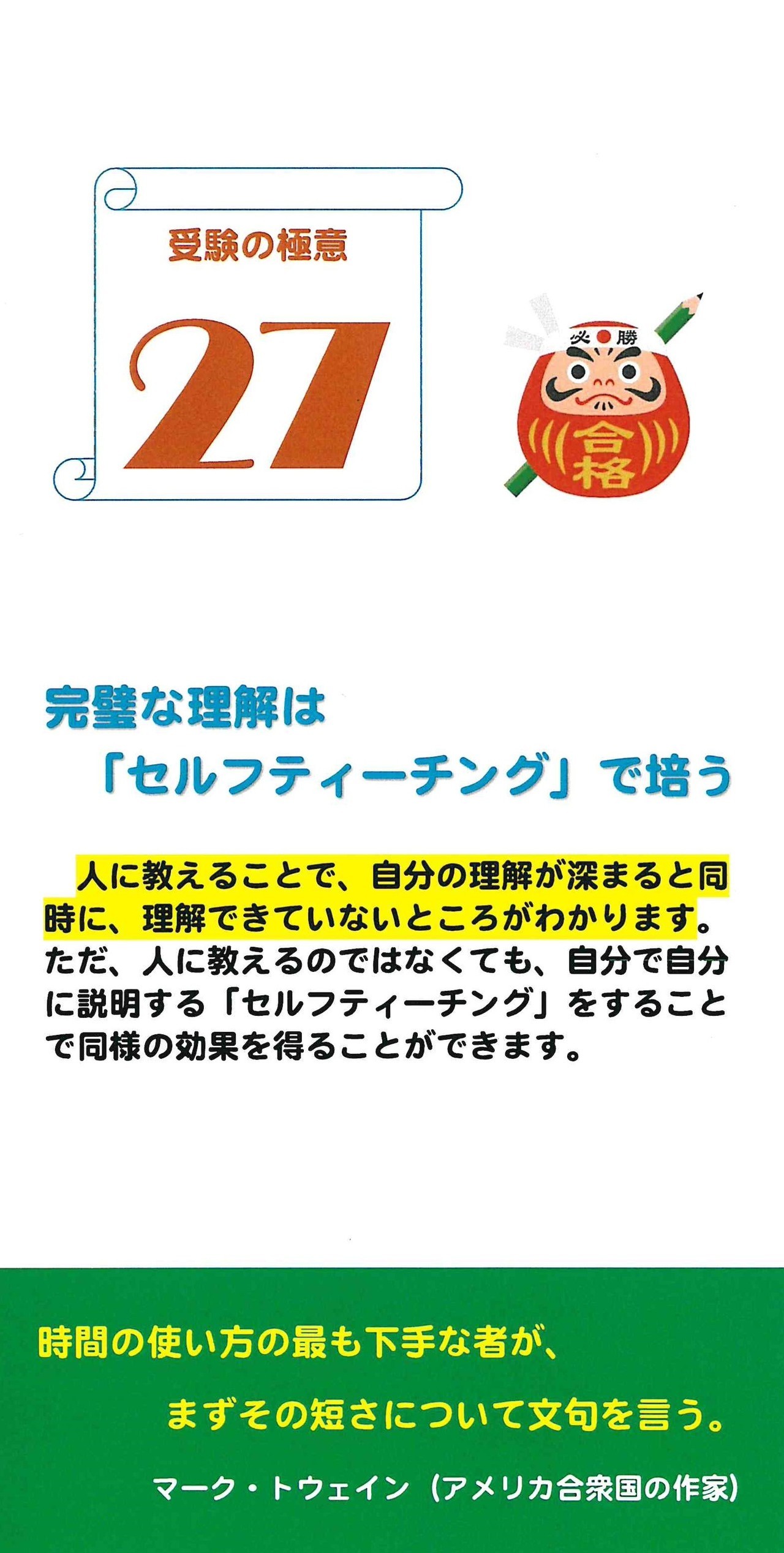 清楓義塾が考える「受験の極意」と、受験に役立つ「名言・格言」を1ヵ月カレンダーにしました。入塾者にプレゼントしています。