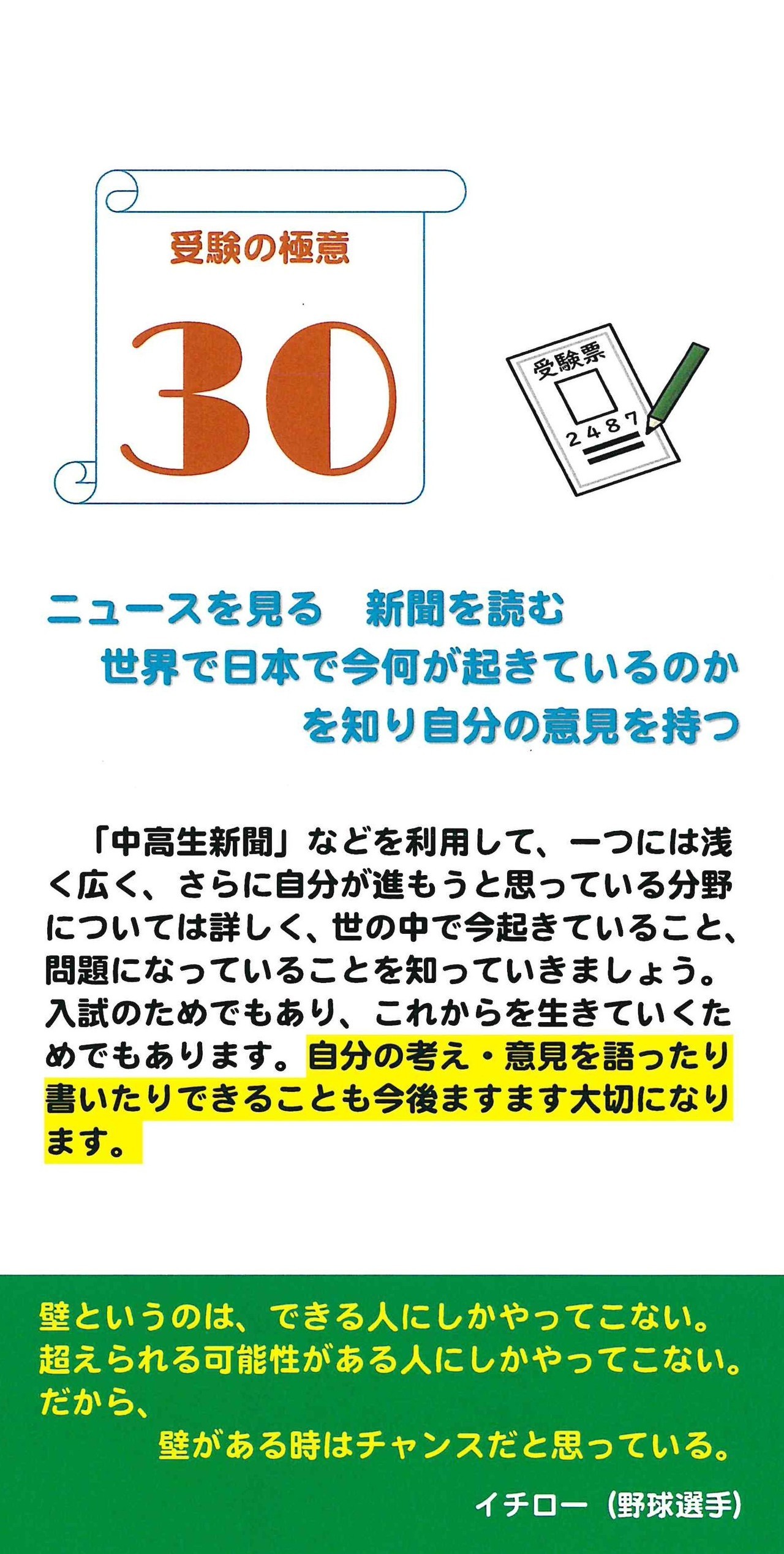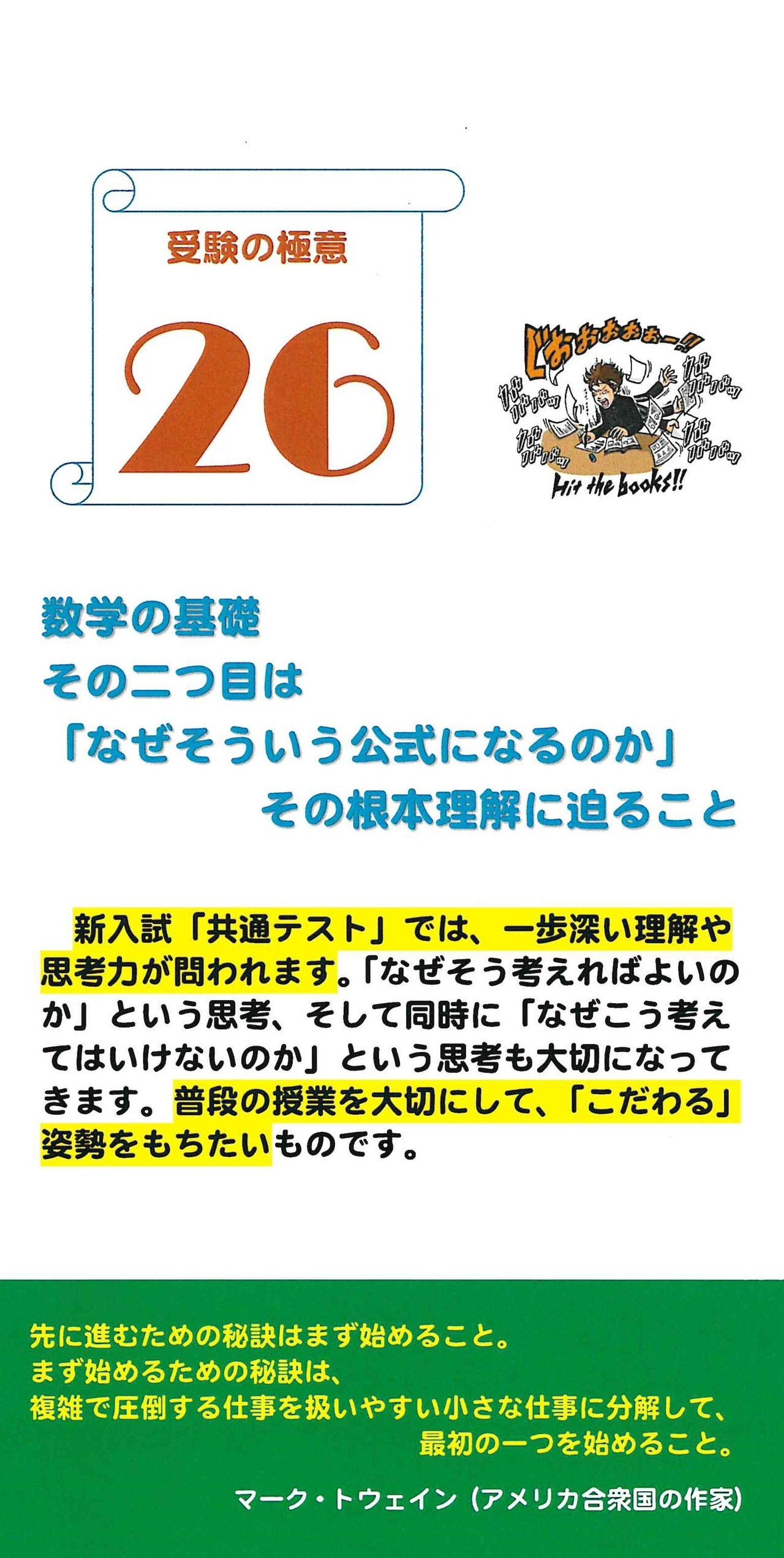 ここでは最近1ヵ月間で発信した”応援メール”の題目を掲載しますので、興味をお持ちになられましたら、下の「詳しくはこちら」か、Menuの「塾長から受験生への応援メール」をクリックしてください。