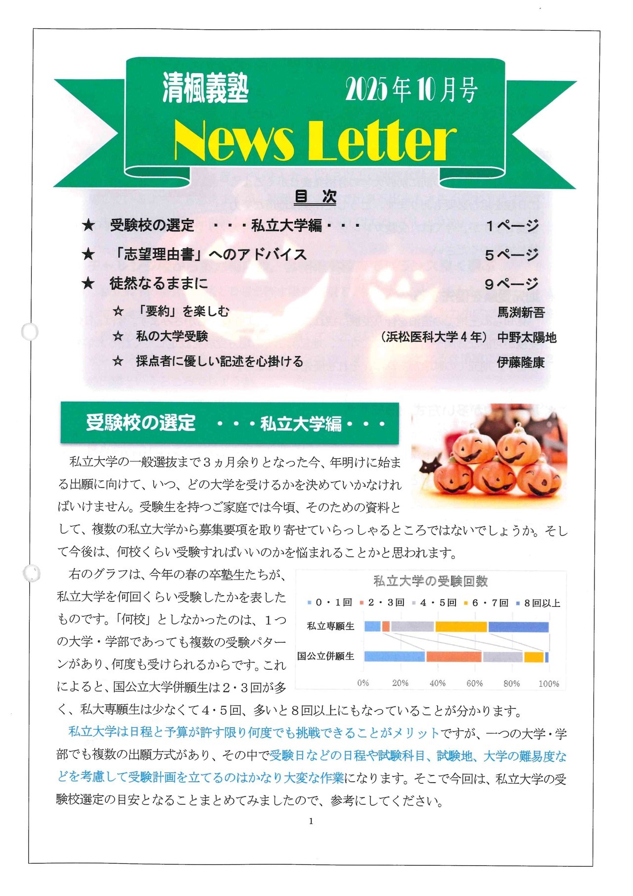 2.ニュースレター : 受験情報や今塾で取り組んでいること、さらには、スタッフが思う徒然なることを概ね12ページにわたって記載